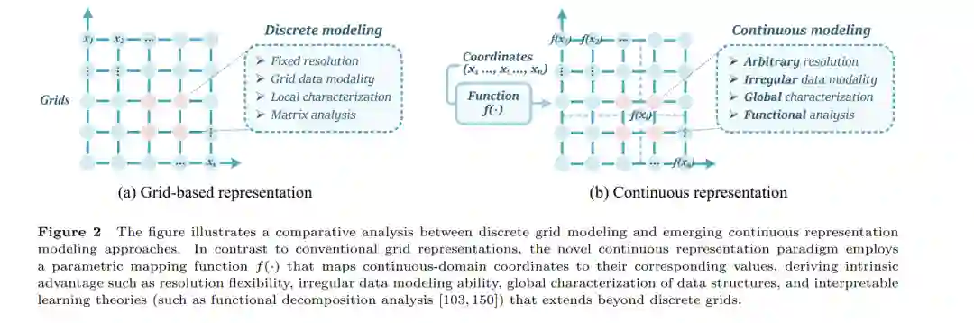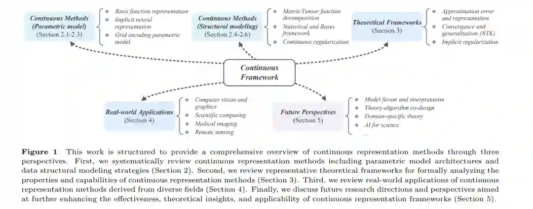 第 2 节:回顾各种连续表示模型与结构建模方法的发展; * 第 3 节:深入探讨连续表示方法的理论基础,如逼近误差分析与神经切线核理论; * 第 4 节:梳理其在医学成像、遥感、生物信息等应用场景中的实践成果; * 第 5 节:展望未来研究方向,激发对连续表示方法的进一步探索。