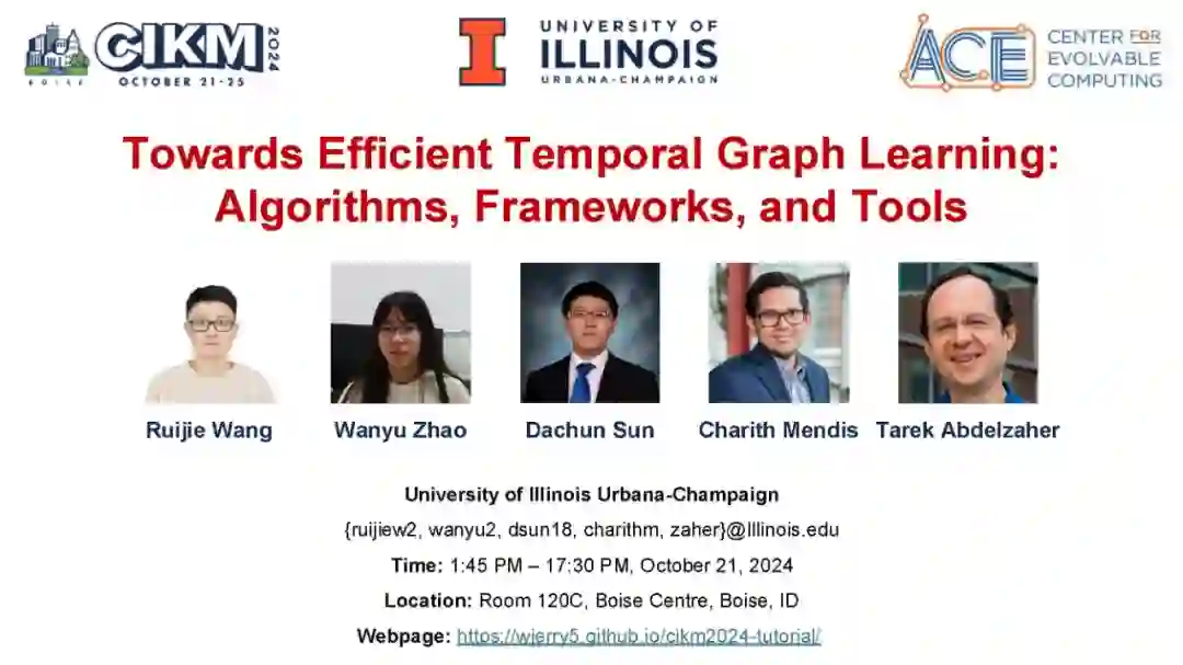 基于这些效率挑战,本教程系统地介绍了最新的具备数据效率和资源效率的TGNN算法、框架和工具,并探讨了在高效时间图学习领域中一些具有前景但尚未充分研究的方向。本教程旨在为数据挖掘、机器学习和人工智能领域的研究人员和从业者提供帮助。