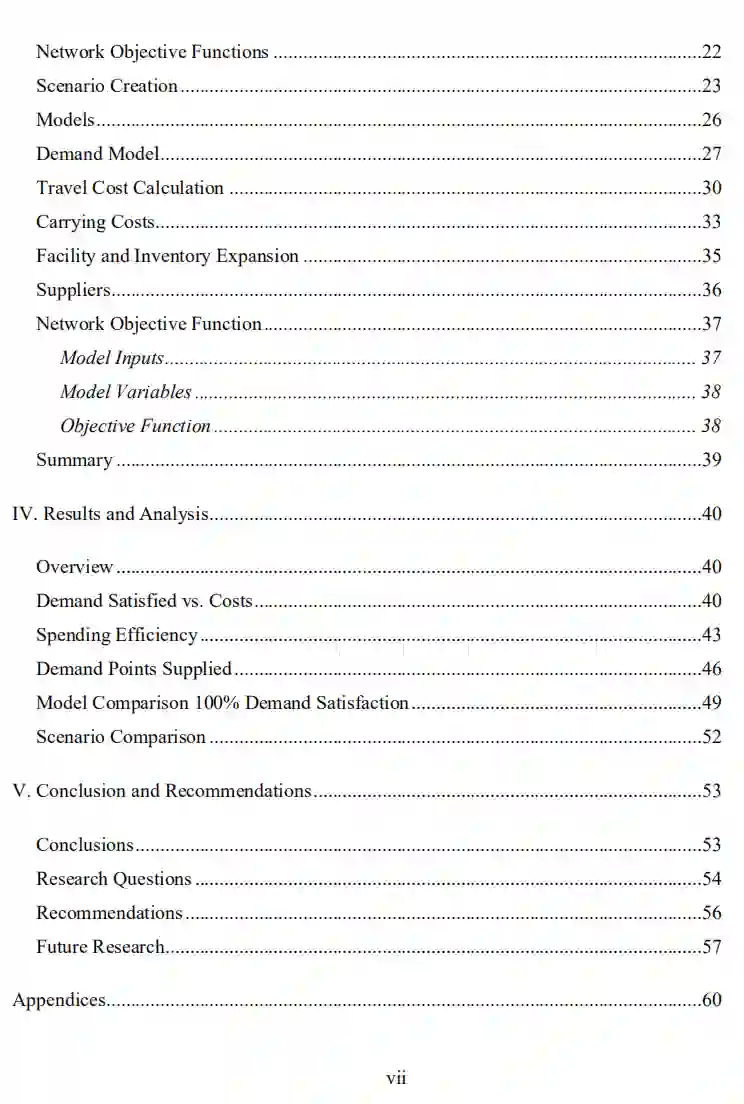 通过运输成本、携带成本、供应成本、扩张成本和满足需求的范围,本研究评估了所有30个模型。研究表明,鉴于对韩国战争需求的预测,用AFMS资产将很难满足某些产品的需求,如氯胺酮和芬太尼口服液。网络能力的扩展将减轻这种需求的不足,而引入具有必要资源的供应商将完全消除这些不足。