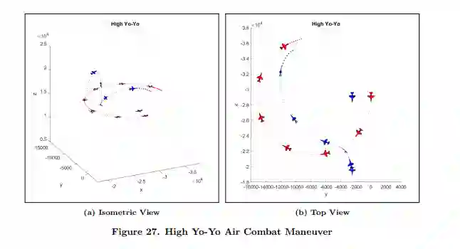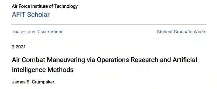 在可视范围内的空战涉及执行高度复杂和动态的活动,需要快速、连续的决策以生存和击败对手。战斗机飞行员花费数年时间来完善交战战术和机动动作,然而不断出现的无人自主飞行器技术引起了一个自然的问题--自主无人作战飞行器(AUCAV)能否被赋予必要的人工智能,以独立完成具有挑战性的空战机动任务?我们制定并解决了空战机动问题(ACMP),开发了一个马尔可夫决策过程(MDP)模型来控制一个寻求摧毁对手飞行器的AUCAV。该MDP模型包括一个5自由度、点质量的飞机状态转换模型,以准确表示机动时的运动学和能量。ACMP中状态空间的高维和连续性质使得经典的解决方法无法实施。相反,我们提出了一种近似动态规划(ADP)方法,其中我们开发并测试了一种近似的策略迭代算法,该算法实现了神经网络回归,以实现AUCAV的高质量机动策略。为了计算测试的目的,我们指定了一个有代表性的拦截场景,其中AUCAV的任务是保卫一个责任区,必须与试图穿透保卫空域的敌方飞机交战并摧毁它。进行了几个设计实验,以确定飞机特性和对手的机动战术如何影响拟议ADP解决方案的功效。此外,设计的实验使高效的算法超参数调整成为可能。ADP生成的策略与目前ACMP文献中发现的两个公认的基准机动策略进行了比较,一个只考虑位置,一个同时考虑位置和能量。在调查的18个问题实例中,ADP策略在18个实例中的15个超过了只考虑位置的基准策略,在18个实例中的9个超过了位置-能量基准策略,在最能代表典型空中拦截交战的问题实例中获得了更好的杀伤概率。作为一个有趣的探索,以及对我们方法的定性验证,由ADP策略产生的机动与标准的、基本的战斗机机动和常见的特技飞行机动进行了比较。结果表明,我们提出的ADP解决方法产生了模仿已知飞行动作策略。