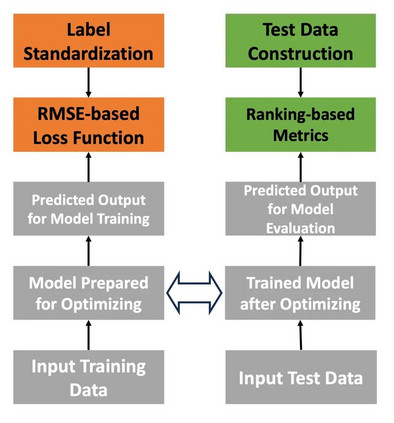 图 4 基于提出框架的模型损失函数和测试集上表现一致性验证为了验证我们提出的框架的有效性,我们分别从基于该框架训练得到的模型的损失值和评估数值一致性,以及是否可以使得拥有不同表达能力的模型在当前框架下的表现也保持一致。同时,我们也会对我们提出的标签标准化策略,以及排序指标的有效性进行验证。实验结果如下所示。从图 4对应实验结果中看出来,该框架在验证模型训练和测试稳定性方面表现一致。
