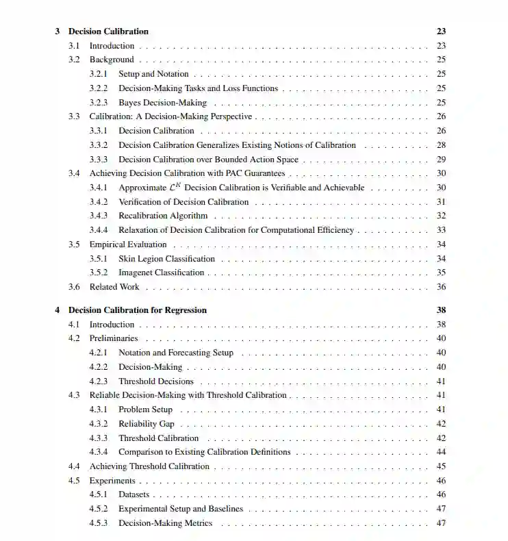 贡献1。提出了一种新的方法,通过精确的不确定性量化,向下游决策者传递信心,后者将对(高风险)决策进行预测。精确的不确定性量化可以通过预测相关结果的真实概率(例如给定症状的病人患病的真实概率)来实现。虽然在大多数情况下,准确地输出这些概率是不可能的,但对于大型决策任务,学习与真实概率难以区分的概率却是惊人的可能。不可区分性保证了决策者的可靠性,因为在他们的决策任务中,他们不应该能够区分预测概率和真实概率之间的区别。作为一个应用程序,我开发了一些预测模型,如医疗诊断、航班延误预测和贫困预测等领域。我展示了通过使用我的方法,决策者可以自信地做出导致良好结果的决策。