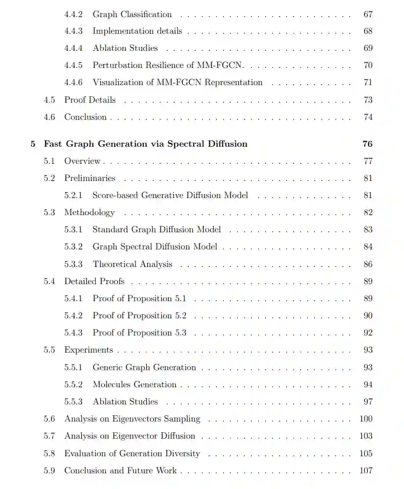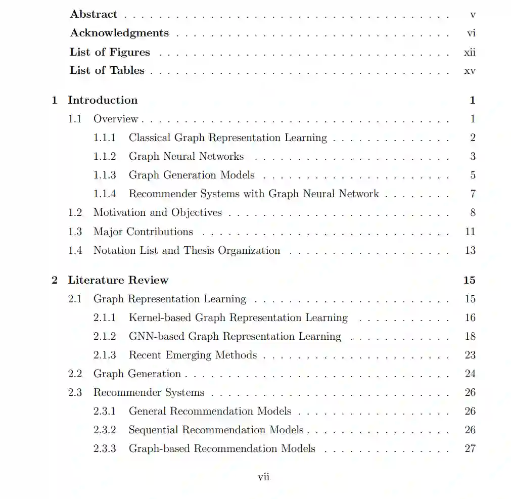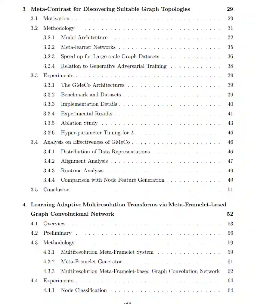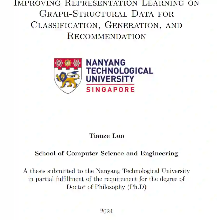 本论文探讨了图表示学习中的创新方法及其在深度学习模型中的应用,在多个关键领域做出了重要贡献。我们首先介绍了 Graph Meta-Contrast (GMeCo) 框架,这是一种用于图上对比表示学习的全新元学习框架。GMeCo 能够有效生成增强图,并最大化增强图与输入图之间的互信息,在鲁棒性和判别性特征学习上优于当前方法。 接下来,我们提出了 多分辨率基于 Meta-Framelet 的图卷积网络 (MM-FGCN) 模型。该模型在自适应多分辨率图分析方面取得了进展,克服了固定变换的限制,并能够动态处理不同尺度的图数据。MM-FGCN 能够捕捉图的微观和宏观结构,展现了其在各种图学习任务中的优越性。 此外,我们引入了 图谱扩散模型 (GSDM),这是一种用于图结构数据生成的全新方法。GSDM 在图谱空间中使用低秩扩散随机微分方程,增强了图拓扑结构的生成,并降低了计算负荷。与现有模型相比,该方法在图生成的效率和质量方面表现出显著改进。 最后,我们开发了一个基于多视角方法的序列推荐系统新框架,结合了图神经网络 (GNNs) 和 Transformer。该多视角结构利用用户-项目交互和协作信息,提供了鲁棒且准确的用户偏好预测。该模型相较于传统模型展现了其有效性。 总体而言,本论文在图表示学习方面提出了有效的方法和模型,为该领域的进步做出了贡献,并为未来图基深度学习应用的研究奠定了基础。