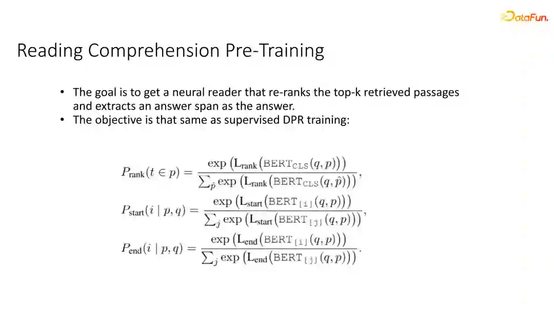 接下来是关于reading compression pre-training,这部分和DPR的监督学习supervised training的过程基本一致,在此就不多做赘述。