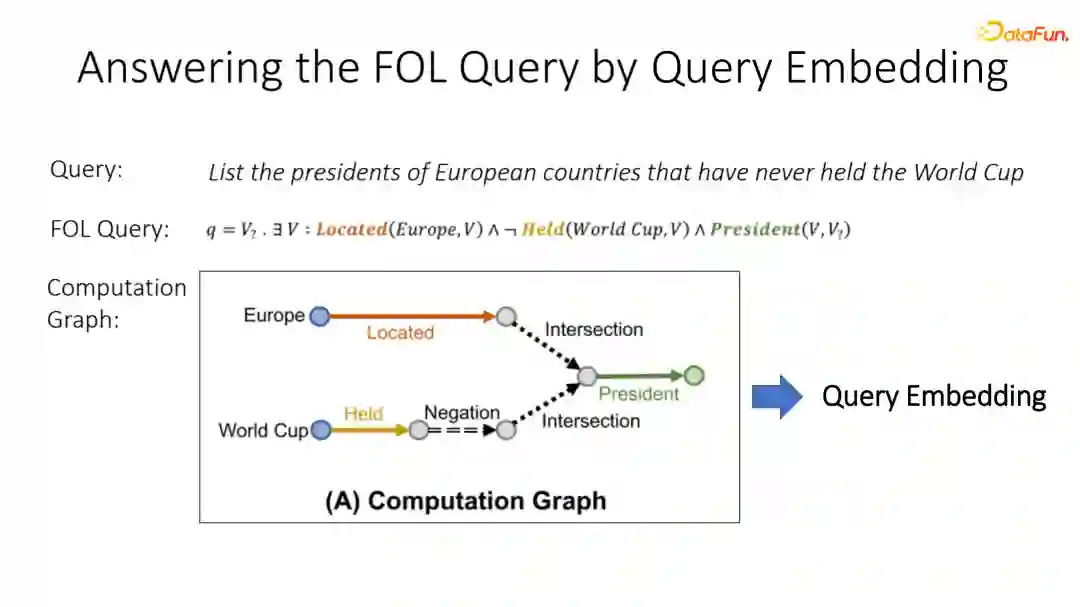 为了解决这些问题,近年来有一系列称为query embedding的工作,他们的基本思想是将一个复杂的FOL query先转化成一个computation graph。