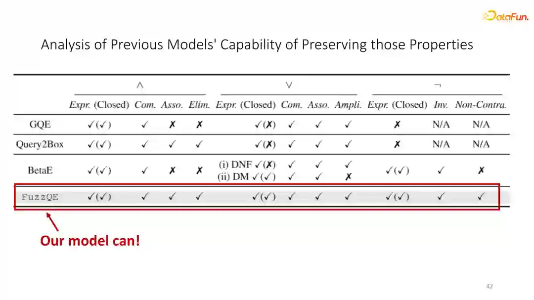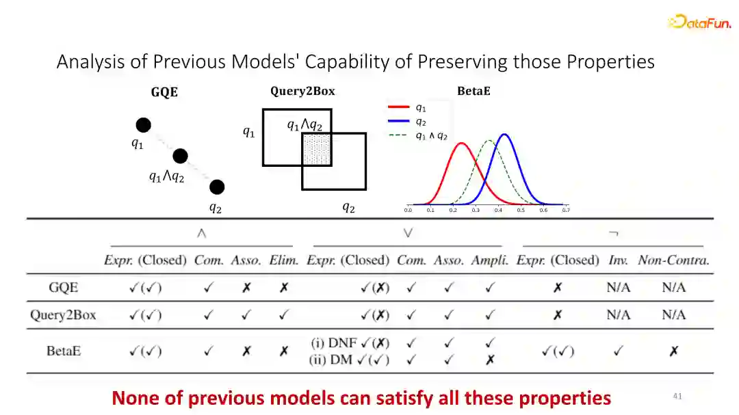 我们同时做了一个理论分析去判断之前的所有 query embedding 是否符合其中的每一条logical law。有研究者指出每一个query embedding的工作都或多或少缺失掉其中的某一些性质。