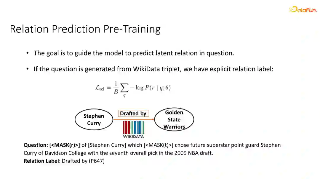如果说我们的问题是通过WIKIDATA生成的,WIKIDATA天然具有关于relation的标注。比如Stephen Curry和Golden State Warriors之间是选秀关系,就是被招募的关系,因此我们要预测的ground truth relation 是 Drafted by,我们就可以直接通过模型的输出来预测出对应的一些question真实的relation。