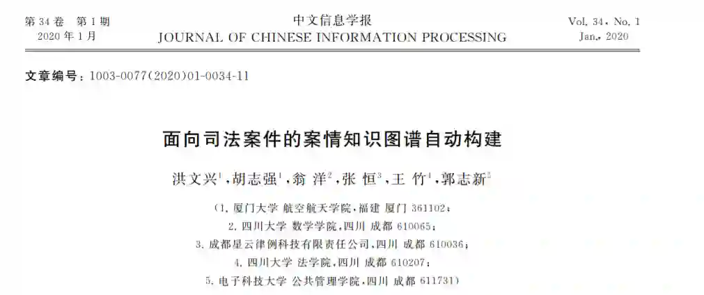 摘要 以法学知识为中心的认知智能是当前司法人工智能发展的重要方向。该文提出了以自然语言处理(NLP)为核心技术的司法案件案情知识图谱自动构建技术。以预训练模型为基础,对涉及的实体识别和关系抽取这两个NLP基本任务进行了模型研究与设计。针对实体识别任务,对比研究了两种基于预训练的实体识别模型;针对关系抽取任务,该文提出融合平移嵌入的多任务联合的语义关系抽取模型,同时获得了结合上下文的案情知识表示学习。在“机动车交通事故责任纠纷”案由下,和基准模型相比,实体识别的F1值可提升0.36,关系抽取的F1值提升高达2.37。以此为基础,该文设计了司法案件的案情知识图谱自动构建流程,实现了对数十万份判决书案情知识图谱的自动构建,为类案精准推送等司法人工智能应用提供语义支撑。