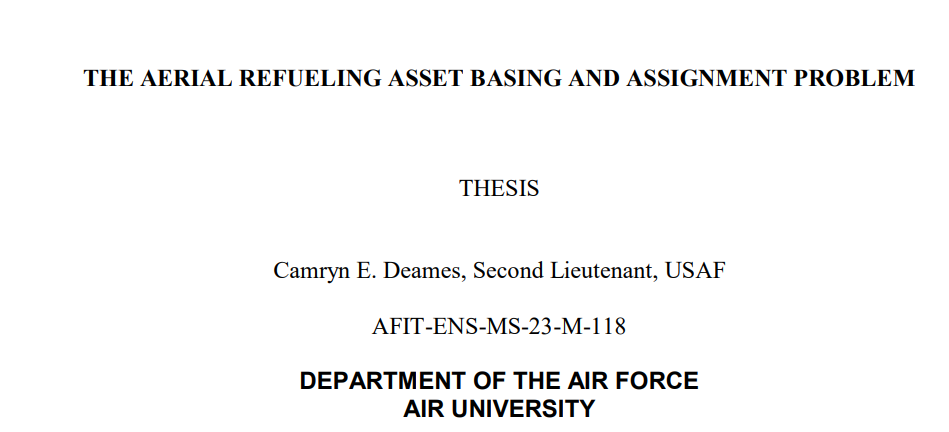 自冷战以来,空中加油(AR)机队的规模逐渐缩小,而最近由于欧洲战区和印度洋-太平洋战区的紧张局势日益加剧,对空中加油的需求有所增加。空中加油的限制阻碍了空中机动司令部和美国贸易司令部执行国家安全战略和国防战略的任务。由于半自主空中加油机在续航时间、生存能力、跑道要求和燃料卸载能力等方面的优势,引进和整合半自主空中加油机是下一个合理的步骤。本研究通过两种模型方法来解决空中加油资产的停放和分配问题:基线模型和燃料穿梭概念模型。前一种模型考虑的是只有有人驾驶加油机或只有半自动加油机的情况,而后一种模型研究的是半自动加油机与有人驾驶飞机协调工作的情况。给定一个现实场景、一组加油地点、一组可用的加油机基地和一组可用的加油机类型,这两个模型都能在满足燃料需求和加油机及加油机基地运行限制的同时,最大限度地减少加油机数量及其相应的运输距离。这些模型确定了 24 小时运营期间理想的基地和油轮加油分配。基地、路线和任务的选择提供了运行性能指标,如每天的出动架次、机队规模、燃料消耗和燃料卸载与消耗的比率,为后续的分析和见解提供了依据。