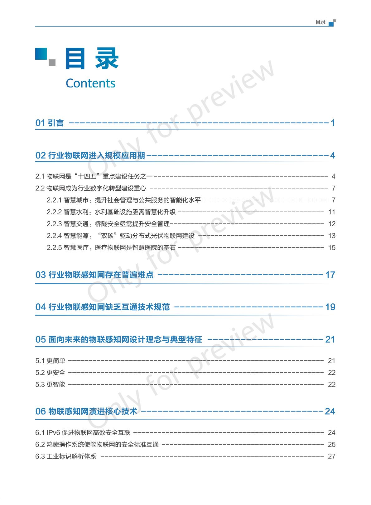 物联感知网是行业物联网的重要组成部分,是行业数字化转型的基石。蓝皮书着眼于行业痛点,以“更简单、更安全、更智能”的理念,基于IPv6技术、终端智能操作系统、工业标识等核心技术,重构和规范化感知接入网,提出构建以“全程极简、全栈安全、全景智能”为典型特征的物联感知网解决方案,夯实行业数字化联接底座。