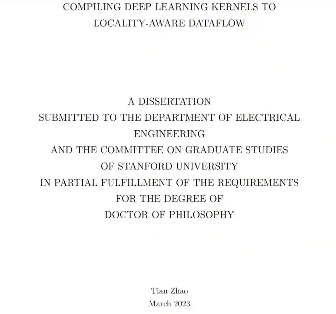 新兴的深度学习应用需要前所未有的计算和内存容量。为了加速这些应用,数据流加速器等新型处理系统努力利用深度学习模型中的多个并行维度,例如张量和管道并行。尽管这些系统在充分利用时提供了超高的性能,但编译深度学习应用程序来利用它们的计算能力仍然是一个具有挑战性的问题。随着领域特定编程语言、加速器设计和机器学习方面的最新进展,我们现在有潜力通过算法、软件和硬件协同设计,更好地满足在数据流加速器上训练和评估大型深度学习应用程序的需求。