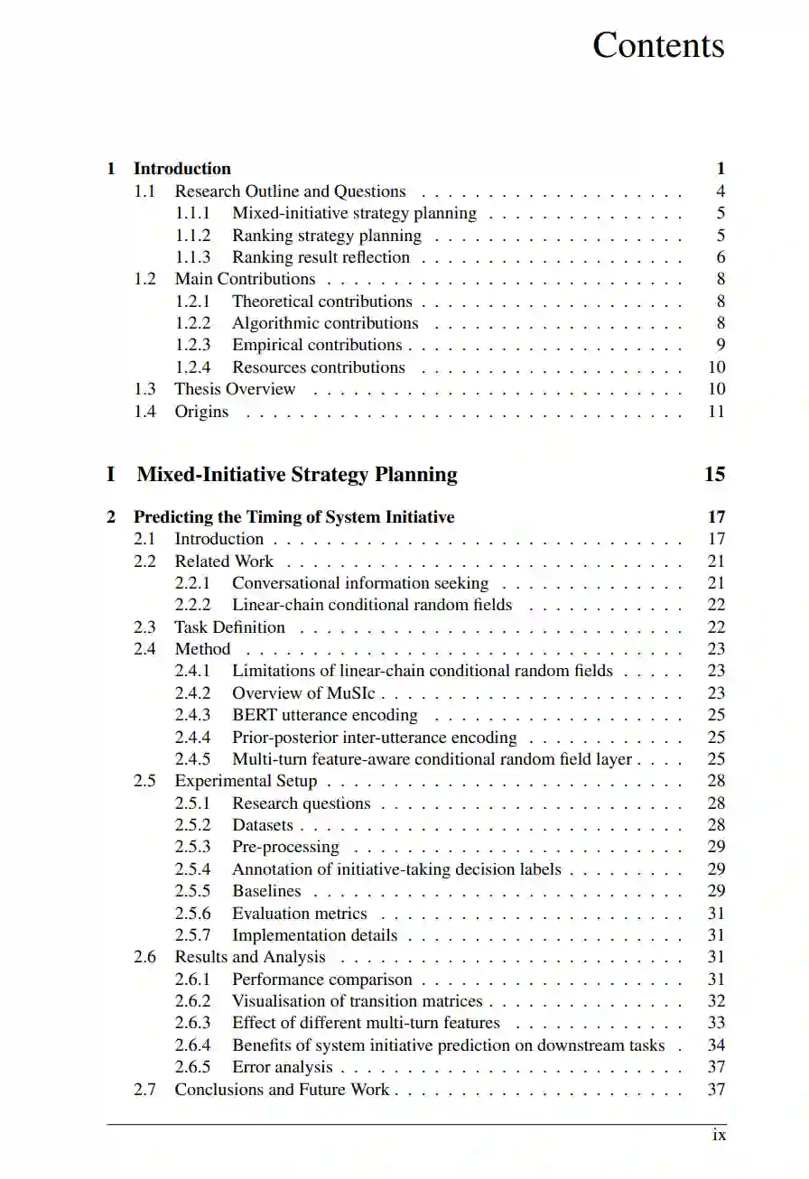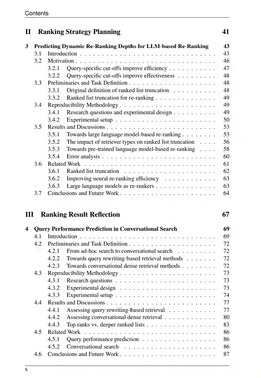 信息获取系统已经深度嵌入人类社会的“毛细血管”之中,成为连接人类与信息的关键工具。许多信息获取系统依赖静态工作流,即对所有用户查询采用固定的执行流程。然而,这种“一刀切”的方式限制了系统在复杂现实场景中对用户查询进行因地制宜处理的能力。为突破这一限制,已有研究探索了基于智能体工作流的信息获取方法,在该范式中,一个或多个自主智能体可根据每个用户查询动态调整执行路径。 本论文聚焦于优化信息获取的智能体工作流,针对以下三个核心组成部分的局限性展开研究:人机混合策略规划、排序策略规划以及排序结果反映。 * 论文第一部分致力于优化人机混合策略规划。本部分包含一个章节,聚焦于解决系统主动行为预测范围过窄的问题。为应对该问题,本章提出并建模了一个新任务:系统主动行为预测(System Initiative Prediction,SIP),从而拓宽系统主动行为的定义与预测能力。 * 第二部分旨在优化排序策略规划,其中包含一个章节,重点研究面向单条查询的动态重排序深度预测这一关键任务。考虑到在大语言模型(LLM)支持的重排序背景下,该任务尚未被充分研究,本章在这一新场景中系统地探索了该问题。 * 第三部分则聚焦于优化排序结果反映,共包含两个章节,核心任务为查询性能预测(Query Performance Prediction,QPP)——这是排序结果反映中长期存在的重要研究方法。尽管QPP在信息检索中具有重要意义,但目前在对话式搜索中的研究较少,且鲜有工作探索利用LLM能力提升QPP准确性。该部分的第一章将传统为临时性搜索(ad-hoc search)设计的QPP方法扩展至对话式搜索场景;第二章则进一步利用LLM能力提升QPP预测精度。