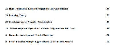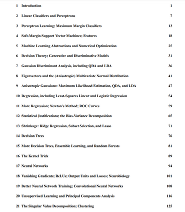 本报告包含加州大学伯克利分校机器学习入门课程的讲义笔记。内容涵盖了许多分类与回归的方法,以及若干聚类和降维的方法。其内容简明扼要,因为仅包含在一个学期的课程中能够通过板书讲解完整呈现的内容,并且话题的选择仅限于少量特别实用和流行的算法。本报告汇编了我为加州大学伯克利分校CS 189/289A课程《机器学习》的讲义笔记。该课程同时面向本科生和研究生入门级学生。我希望这份报告能为已熟悉向量微积分、线性代数、概率论和统计学的读者提供快速进入该领域的途径。建议将本报告与我的CS 189/289A网页结合使用,后者提供了每节课的详细描述,以及与课程相关的额外链接和阅读材料。需要注意的是,这份报告和网页都是“动态文档”,每次我教授这门课程时,都会进行适当的改进。“讲义笔记”这一术语在如今的教学中已逐渐演变为教授们为补充课堂教学而编写的长篇教材式内容。然而,这份报告并非如此。它直接汇编了我授课时的实际笔记,我将其命名为《简明机器学习》,因为其中几乎不包含任何无法在为期十四周、每周两次、每次80分钟的课堂时间内完整讲解的内容。(除去假期和期中考试,课程共有25节课。)括号内的文字是课堂讲解时的口述内容,其余内容均以“白板”形式呈现——在我的课堂中,这个“白板”指的是平板电脑。我使用的白板软件支持插入图形并进行标注,因此报告中包含的图形也可以在课堂上书写。然而,我对PowerPoint持保留态度,因此仅在学期中的三四个简短片段中使用了准备好的幻灯片。这些讲义对于想要快速掌握机器学习基础知识的数学功底扎实的读者来说可能非常理想。但它并不适合所有人。由于时间限制,许多细节未能涵盖。我相信,数学基础好的读者可以自行补充这些细节。然而,大部分学生,包括选修该课程的学生,可能需要额外的阅读材料或讨论课以获取更详尽的信息。我的课程网页列出了大部分课程的额外阅读材料,其中许多来自两本已免费公开的教科书:《An Introduction to Statistical Learning with Applications in R》(第二版,由Gareth James、Daniela Witten、Trevor Hastie和Robert Tibshirani编著,2021年,Springer出版社,ISBN # 978-1-0716-1417-4)和《The Elements of Statistical Learning: Data Mining, Inference, and Prediction》(第二版,由Trevor Hastie、Robert Tibshirani和Jerome Friedman编著,2008年,Springer出版社)。此外,维基百科也对许多机器学习算法提供了优秀的入门介绍。如果读者需要详尽的“讲义笔记”,可以参考斯坦福大学Andrew Ng编写的优质内容。我无意重复这些努力,而是专注于满足“最简入门”这一未被充分关注的需求。(或许还有“最佳插图创意盗用”。)本报告内容简明的另一个原因在于选题。CS 189/289A课程于2013年春季由Jitendra Malik教授引入至伯克利,其大部分选题在本报告中得以保留。Jitendra曾表示,他只教授自己或其合作者在某些应用中成功使用过的机器学习算法。他认为,“机器学习课程太重要了,不能仅仅交由机器学习专家”——即机器学习算法的用户往往比其发明者更清楚算法的实际用途。最后,我要感谢Peter Bartlett、Alyosha Efros、Isabelle Guyon和Jitendra Malik——CS 189/289A的历任教师——以及他们的课程与讲义,这些为我自己学习这一领域提供了帮助。尽管我在授课和材料安排上加入了个人特色,并进行了大量调整,但总体上我仍是在继承他们的框架上做出渐进式改进(或许也有渐进式的缺陷)。此外,我还要感谢Carlos Flores分享我的课堂截图。