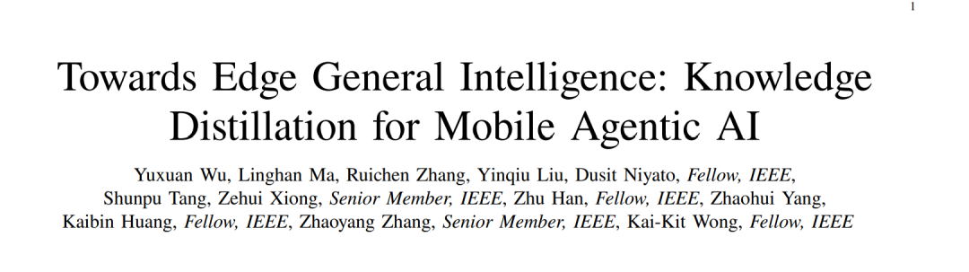 移动边缘计算市场正在经历显著增长,预测显示其市场规模将从 2024 年约 16.5 亿美元增长至 2032 年超过 135 亿美元¹。推动这一增长的动力主要来自对低时延计算以及更高质量体验(QoE)的需求,而移动与物联网设备的数量正快速攀升。这样的发展格局催生了一场重要的技术变革,即所谓的“智能体化(agentification)”,通过集成大型语言模型(LLMs)和其他先进 AI 模块,使边缘设备具备自主能力。这一转变将传统被动的边缘节点转化为主动的移动智能体 AI 系统,使其能够感知环境、进行推理,并在无须人工干预的情况下执行复杂的多步骤任务。 这一智能体中心的范式具有多重优势。移动智能体 AI [1] 能够实现更高程度的自动化与个性化,因为智能体可以学习用户偏好并在设备本地实时适应动态场景。本地计算显著降低了时延,并通过减少对集中式云服务器的依赖提升了数据隐私。此外,这些智能体可以主动预判问题、优化流程,并在不同系统之间协同操作,从而提升运行效率、加速问题解决、增强服务灵活性。通过在网络边缘嵌入复杂的认知能力,移动智能体 AI 为更加智能、响应迅速且安全的应用铺平了道路,这是迈向 EGI 的关键步骤。EGI 被定义为:边缘设备在严格的资源与时延约束条件下,能够执行类似云端 AI 的通用推理与问题求解能力 [2]。 EGI 的实现依赖于移动智能体 AI 的部署。LLMs 为这些智能体提供了认知引擎,在规划、推理和工具使用方面展现出卓越能力。然而,LLMs 巨大的计算、存储与能耗需求与移动端和边缘设备的资源受限特性根本不兼容 [3]。这种“部署鸿沟”是实现 EGI 愿景的首要障碍。 为弥合这一差距,知识蒸馏(Knowledge Distillation, KD)作为一种压缩大型模型的关键方法应运而生。KD 指的是训练一个较小的“学生”模型去模仿一个更大、更强的“教师”模型的行为。这使得学生模型能够在紧凑的模型规模中保留教师的高级能力,从而适用于资源受限的边缘硬件部署 [4]。