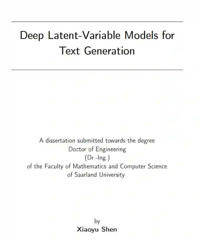 文本生成旨在为下游任务生成类人的自然语言输出。它涵盖了广泛的应用,如机器翻译,文档摘要,对话生成等。近年来,基于深度神经网络的端到端体系结构被广泛采用。端到端方法将所有子模块(过去由复杂的手工规则设计)合并成一个整体的编码-解码体系结构。如果有足够的训练数据,它就能够实现最先进的性能,同时避免了对语言/领域相关知识的需求。然而,众所周知,深度学习模型极度需要数据,由它们生成的文本通常缺乏多样性、可解释性和可控性。因此,在实际应用中,很难相信他们的输出。深度潜变量模型,通过指定中间潜过程的概率分布,提供了一种解决这些问题的潜在方法,同时保持深度神经网络的表达能力。这篇论文介绍了深度潜在变量模型是如何在文本生成的标准编码器-解码器模型之上改进的。