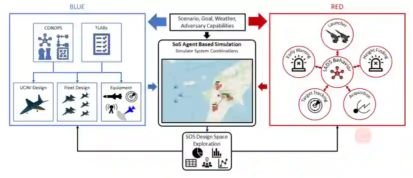 虽然为开发这些概念做出了巨大努力,但目前只有少数飞行原型。仅有的几个原型机还处于测试的早期阶段。因此,还没有(公开的)概念证明。出版物通常侧重于实施 MUM-T 的 “较小 ”方面。例如控制算法[7]、决策[8]或 UCAV 本身的设计[9]。然而,正如其他文章[10, 11]所述,要评估任何与动态环境交互的系统的有效性,都必须进行全面的系统(SoS)分析,因为 “突发行为”(Emergent Behaviors)在整体性能中发挥着重要作用。在 MUM-T 的背景下,已有此类系统分析的实例[12-14],但保真度较低,与飞机设计方面的联系甚少。Weiß、Haindl 和 Gräßel 发表了一篇引人注目的文章。该小组将基于代理的建模应用于一个作战场景,并得出结论认为,包括 UCAV 在内可实现 “力量倍增”[15]。然而,为了验证 MUM-T 的概念,并更深入地了解新出现的行为,还需要更多的定量数据。UCAV 的加入是否会带来更好的任务结果还有待观察。此外,使用 UCAV 的 MUM-T 是否能带来其所承诺的优势也有待证明。最后,目前仍不清楚这种 UCAV 应该是什么样子,也不清楚应该如何使用才能产生上述优势。本文旨在填补这一研究空白。此外,本文还试图深入探讨网络化 UCAV 的 “最佳 ”设计和要求及其作战概念(CONOPS)。本文根据已确定的研究空白确立了一个主要研究问题,旨在提供概念验证。