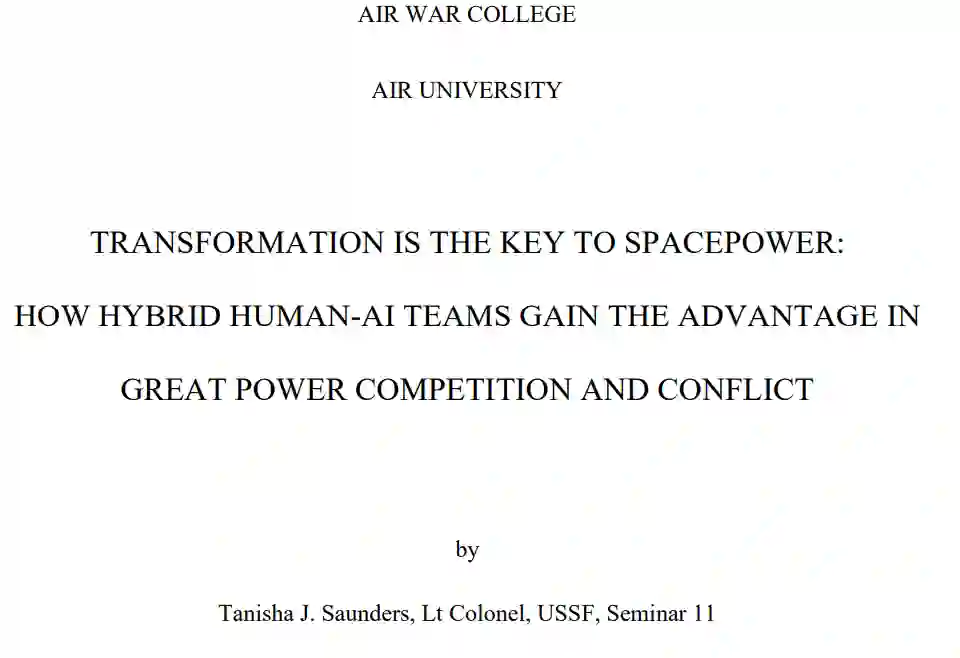 2023 年 12 月,关于安全、可靠和值得信赖地开发和使用人工智能的第 14110 号行政命令,指示整个政府确保美国在利用人工智能的优势、创新和进步方面继续保持领先地位,同时管理纳入这一转型变革的任何风险。美国防部的《负责任的人工智能实施和战略途径》文件为所有部门提供指导和监督,说明如何以及何时将人工智能能力纳入其任务。太空领域的人工智能技术可以增强太空部队执行核心任务的能力,但由于行动的独特性以及人类与人工智能技术配对所产生的额外协同效应,人类与人工智能的团队合作是最大限度发挥人工智能能力的最佳方式。虽然在军事行动中,人类与人工智能的团队合作并不是一个新概念,但要加快行动适应性,必须解决并获得作战人员的信任。