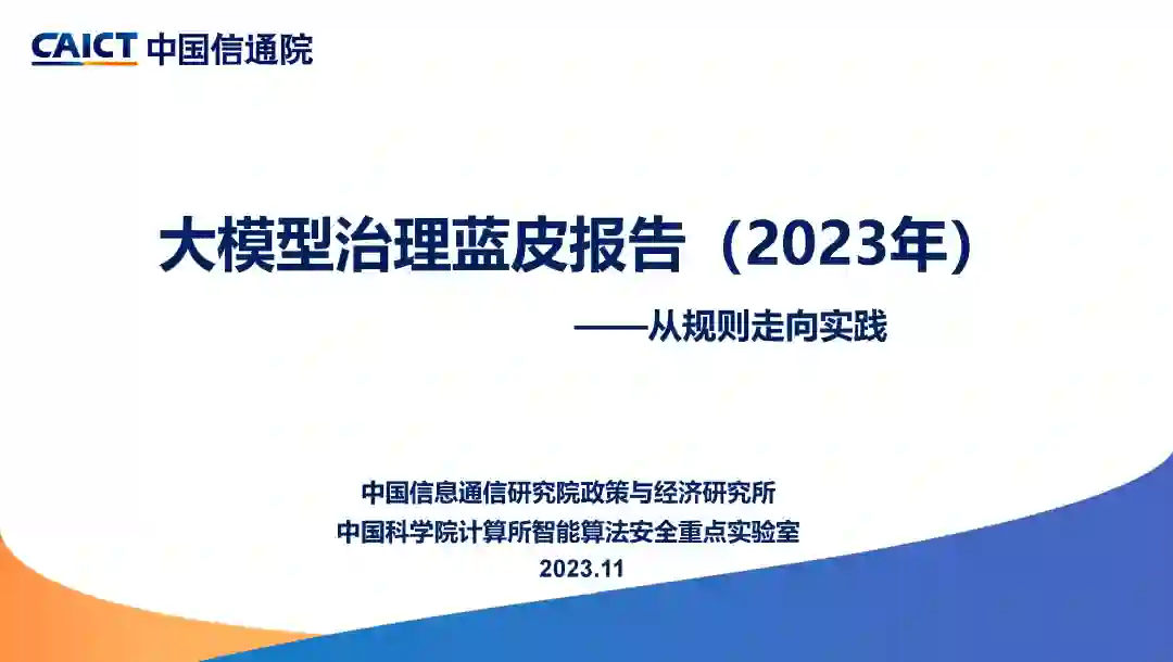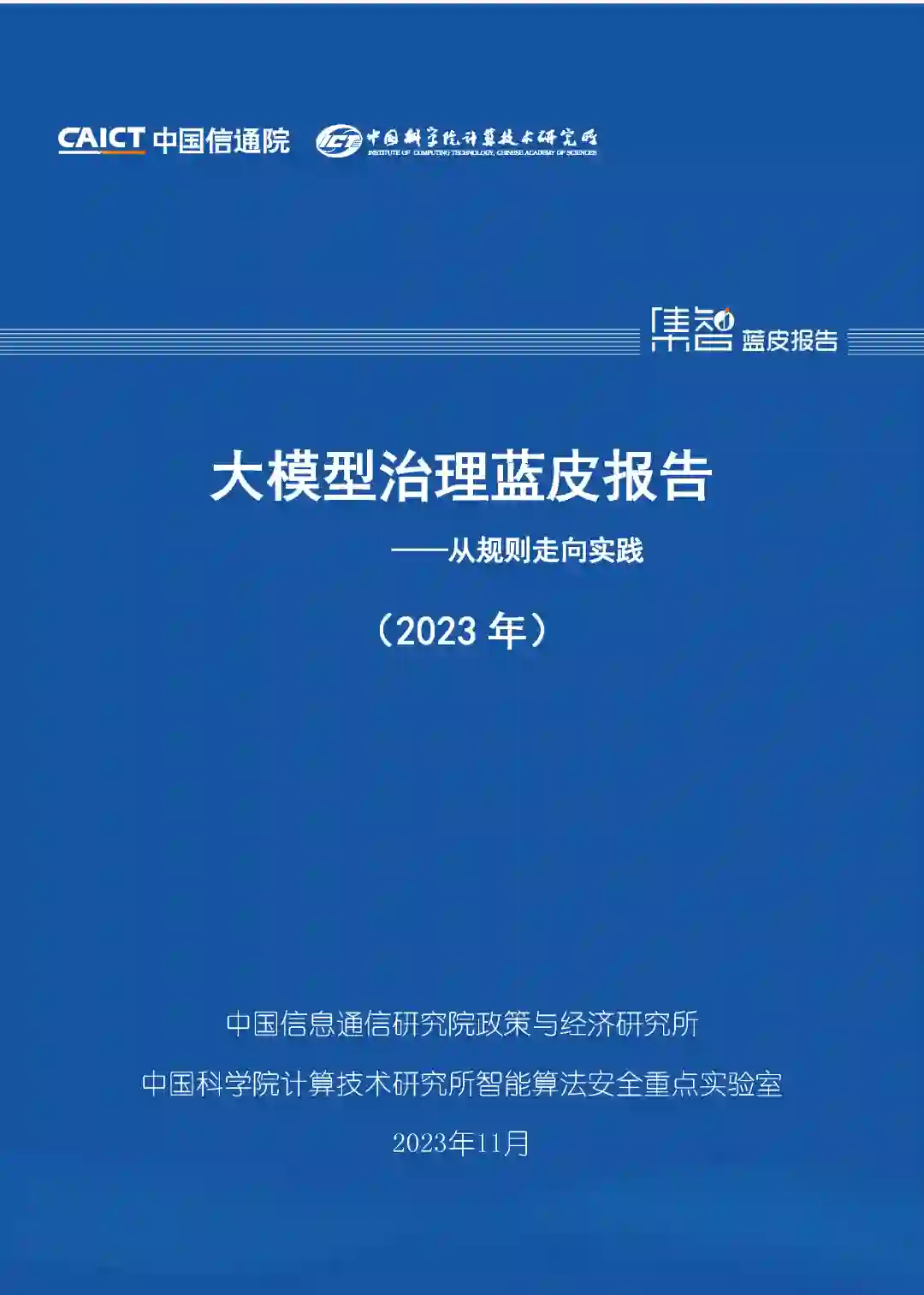 2023年11月24日,中国信息通信研究院和中国科学院计算技术研究所在“2023江西国际移动物联网博览会”上发布了《大模型治理蓝皮报告(2023年)——从规则走向实践》。中国信通院政策与经济研究所所长辛勇飞对蓝皮报告进行了深度解读。