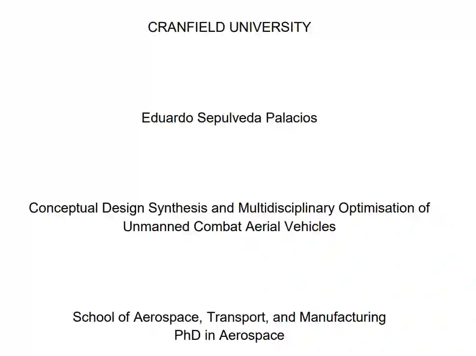 本研究进行的设计空间探索包括:亚音速 UCAV 执行高-低-高任务的任务参数权衡研究、性能与当前第五代战斗机相当的 UCAV 平台的概念和初步设计、全超音速深度拦截任务权衡研究,以及执行时间紧迫的打击任务的高超音速(M ≥ 3.0)舰载 UCAV。