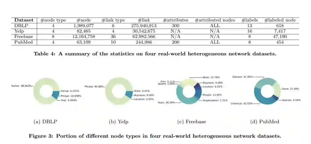 作为第二个贡献,我们通过详尽的数据收集、清理、分析和整理(第4节),特意准备了四个基准的异构网络数据集,具有规模、结构、属性/标签可用性等多种属性。这些不同的数据集,以及一系列不同的网络挖掘任务和评估指标,构成了未来HNE算法的系统而全面的基准资源。