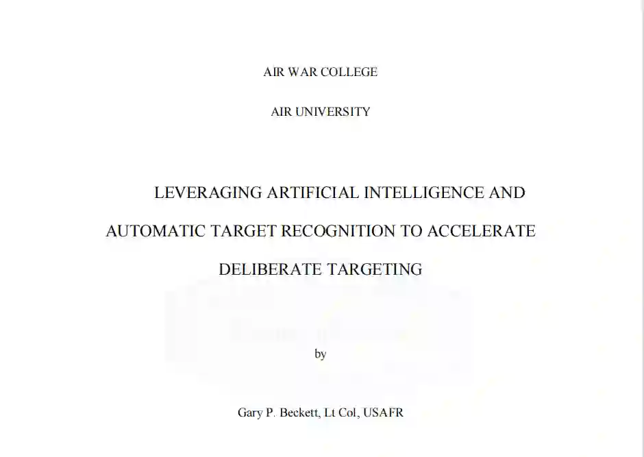 为了减轻负担,人工智能和ATR系统可以提高能力,从而提高这些有限资源的可用性。先进的ATR传感器在人工智能的支持下,可以通过识别比人类操作员更多的目标来弥补不足,而且速度更快。反过来,这可能会加速甚至可能废除目前的目标审查过程,这是在OIR中确定的有针对性的目标定位挑战之一。
