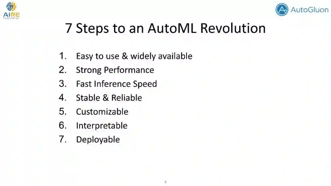 我们教程的主要重点是自动构建和训练深度学习模型,这些模型功能强大,但手动管理起来很麻烦。本教程中涉及的每个主题都附带了一个实践的Jupyter笔记本,它实现了最佳实践(教程前后都可以在GitHub上获得)。大部分代码采用了AutoGluon,这是一个最新的开源AutoML工具包,它既先进又易于使用。