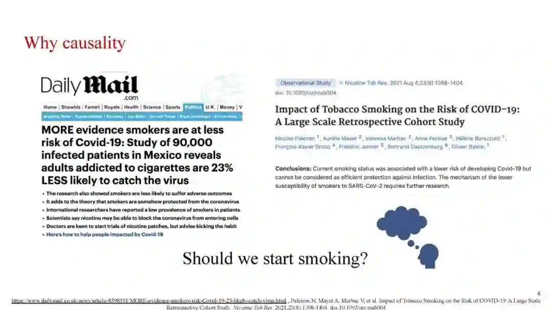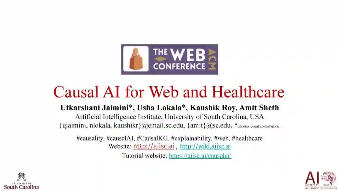 1 教程时间表和活动 本教程主要包含以下四个模块:(10分钟)AI当前的状况:我们首先激发了在医疗保健和分析网络数据时,需要因果AI的动机。我们会给出实际网络例子,突显了现有的统计和数据驱动的AI系统的限制。开场环节将强调创建可理解的可解释AI系统需要因果AI。(25分钟)因果知识图谱开发:因果知识图谱(CausalKG)是迈向基于因果关系的知识灌输学习的符号人工智能的一步。我们证明使用CausalKG的系统不仅仅从相关性中学习,相反,它们对周围环境有着因果理解。除了因果性,CausalKG还使用知识图谱(KG),这也代表了空间,时间和交互。今天使用的AI算法依赖于均匀分布的、独立的数据,这些数据无法推导出假设性的、干预性的场景或超出分布的情况。我们展示了如何启用可能由观察数据和领域专家知识推导出来的干预和反事实推理,以及如何利用CausalKG将领域的因果知识融入当前的KG。我们讨论了构建一个因果知识图谱的过程,该图谱有助于将因果性纳入推理和预测过程,比如理解、规划和诊断医疗状况等。(25分钟)基于本体论和知识的因果解释推理:我们构建了一个推理系统,用于记录基于因果断言的解释,这些断言使用的是形式为关系和子类层次结构的本体论。我们首先构建本体论,使我们能够表达一个事实如何导致另一个事实,以及一个事实如何解释另一个事实。我们提供了一套正式的模式提取,这些因果关系从因果主张转向解释。这些模式展示了被认为是在解释性声明和算法预测上达成判断所必需的本体论原则。我们还介绍了药物滥用本体论,这是一个识别网络数据和精神卫生领域模式的本体论框架。