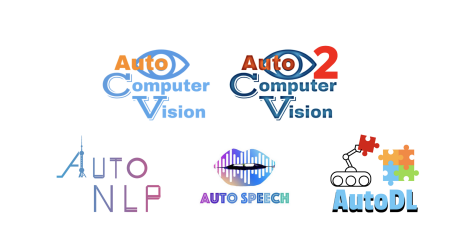 图1.2 本论文期间组织的AutoDL挑战系列的五项比赛。AutoCV(图像)、AutoCV2(图像+视频)、AutoNLP(文本)、AutoSpeech(音频)和AutoDL(全部合并)。