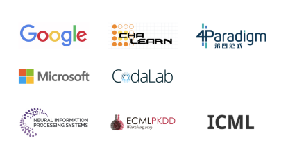 图1.3 本论文期间的合作。谷歌、4Paradigm和微软提供技术支持和GPU积分。ChaLearn是领导组织AutoDL挑战的非营利组织。挑战赛的结果在与NeurIPS 2019、ECML PKDD 2019、ICLR 2020和ICML 2020等会议同地举行的研讨会上分享。