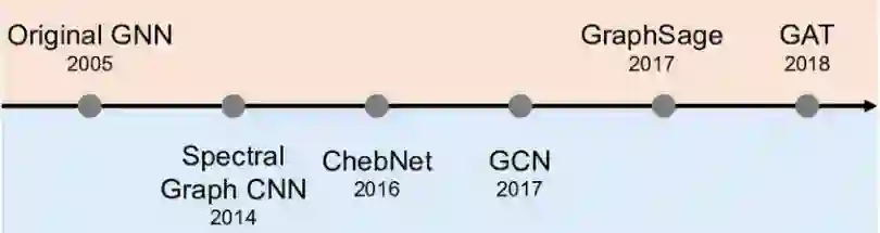 GNN 最初以循环 GNN 的形式发展,用于从有向无环图中提取节点表示。随着研究的发展,GNN 逐渐扩展到更多类型的图结构,如循环图和无向图。受到深度学习中 CNN 的启发,研究人员开发了将卷积概念推广到图域的方法,主要包括基于频域的方法和基于空域的方法。频域方法依赖于图的拉普拉斯谱来定义图卷积,而空域方法则通过聚合节点邻居的信息来实现图卷积。这些方法为处理复杂的图结构和不规则拓扑提供了有效的工具,极大地推动了 GNN 在多个领域,尤其是计算机视觉中的应用和发展。