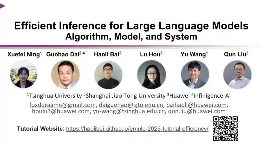 我们将依次讲解各类别的代表性方法,每个子类别选择一至三个典型方案作为实例,深入剖析其设计逻辑以及所针对的主要低效因素。最后,教程将以若干实机演示、核心要点总结以及未来研究方向展望作为收尾,为听众提供全面的理解与启发。 https://haolibai.github.io/emnlp-2025-tutorial-efficiency/