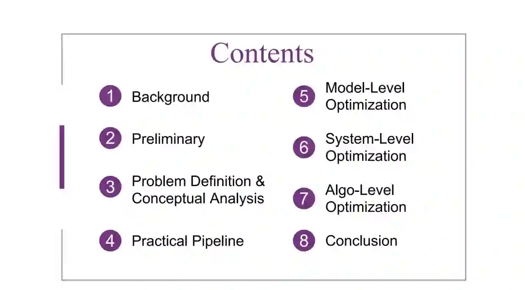 本教程聚焦于大语言模型(LLM)高效推理(Efficient Inference)这一日益重要的主题,旨在从设计者的视角出发,系统性地阐释其关键原理与方法论。我们首先介绍现代大语言模型的基本概念与核心机制,以及相关的软件与硬件背景。随后,将对效率优化问题(efficiency optimization problem)进行形式化定义。为帮助听众建立“系统设计者思维(designer’s mindset)”,我们将讲解如何针对特定硬件上的具体工作负载,诊断模型推理的效率瓶颈。特别地,我们将演示如何利用理论屋顶线模型(roofline model)以及 NVIDIA 工具链(toolchain)来识别这些瓶颈。 在掌握这些分析工具之后,我们将从概念层面解析导致推理效率低下的关键因素,包括:自回归采样机制(autoregressive sampling scheme)、模型规模(model size)以及核心注意力算子(core attention operator)。接着,我们将介绍一个面向大语言模型高效推理的全栈分类体系(full-stack taxonomy),将相关方法划分为算法级(algorithm-level)、**模型级(model-level)与系统级(system-level)**三大类: 1. 算法级优化:涵盖高效解码方法(efficient decoding methods)、输入压缩方法(input compression methods),以及超越自回归生成范式的替代生成机制(alternative generative paradigms beyond autoregression); 1. 模型级优化:通过高效模型结构设计(efficient architecture design),或静态/动态地减少模型层级冗余(redundancy reduction),以提升推理效率; 1. 系统级优化:在不改变模型计算图(computation graph)的前提下,优化推理引擎或部署系统(inference engine / serving system),以提升整体性能。