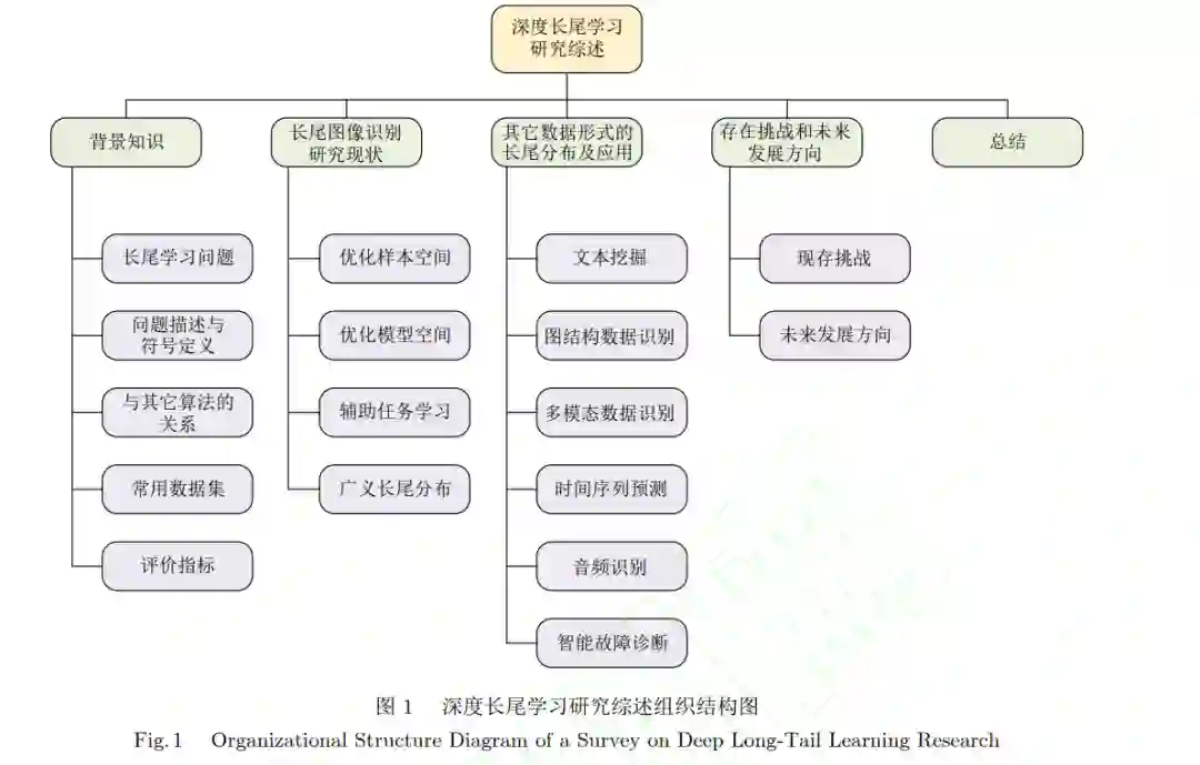 摘要: 深度学习是一门依赖于数据的科学, 传统深度学习方法假定在平衡数据集上训练模型, 然而, 现实世界中大规模数据集通常表现出长尾分布现象, 样本数量众多的少量头部类主导模型训练, 而大量尾部类样本数量过少, 难以得到充分学习. 近年来, 长尾学习掀起学术界的研究热潮, 涌现出大量先进的工作. 本文综合梳理和分析了近年来发表在高水平会议或期刊上的文献, 对长尾学习进行全面的综述. 具体而言, 根据深度学习模型设计流程, 将图像识别领域的长尾学习算法分为丰富样本数量与语义信息的优化样本空间方法, 关注特征提取器、分类器、logits和损失函数这四个基本组成部分的优化模型方法以及通过引入帮助模型训练的辅助任务, 在多个空间共同优化长尾学习模型的辅助任务学习3大类, 并根据提出的分类方法综合对比分析每类长尾学习方法的优缺点. 然后, 进一步将基于样本数量的狭义长尾学习概念推广至多尺度广义长尾学习. 此外, 本文对文本数据、语音数据等其它数据形式下的长尾学习算法进行简要评述. 最后, 讨论了目前长尾学习面临的可解释性较差、数据质量较低等挑战, 并展望了如多模态长尾学习、半监督长尾学习等未来具有潜力的发展方向. 关键词: 深度长尾学习 / 长尾分布 / 不平衡学习 / 深度学习