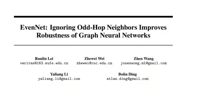 论文题目:EvenNet: Ignoring Odd-Hop Neighbors Improves Robustness of Graph Neural Networks 作者:雷润林,王桢,李雅亮,丁博麟,魏哲巍 通讯作者:魏哲巍