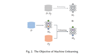 大量研究已经针对机器遗忘展开,现有技术主要分为两类:面向数据的遗忘和面向模型的遗忘【9】。面向数据的方法通过修改原始训练集来实现数据删除。例如,Bourtoule等人【10】提出了一种称为SISA的遗忘方法,该方法将训练集划分为几个不相交的子集,并独立训练每个子模型。通过重新训练子模型,可以有效地删除数据。面向模型的方法涉及操作原始模型,如参数,以实现遗忘。例如,Guo等人【11】提出的认证删除机制,旨在抵消被遗忘数据对模型的影响并更新模型参数。