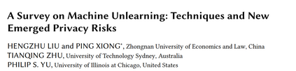由于机器学习算法的重要作用,大量计算机系统开始持有大量个人数据用于决策和管理。例如,日益显著的ChatGPT积极利用大量数据集进行知识发现【1】。然而,研究表明,机器学习模型可以记住训练数据的信息【2, 3】,引发了对个人隐私潜在攻击的担忧。对抗性攻击,如成员推理攻击【4】和模型反演【5】,已展示了从机器学习模型中提取目标数据的信息的能力。为了应对这些担忧,各国在个人隐私的监管和法律方面取得了重大进展。例如,欧盟实施的《通用数据保护条例》(GDPR)和《加州消费者隐私法》(CCPA)明确规定了被遗忘权。数据所有者有义务及时响应这些删除请求【7】,从而催生了一项新技术:机器遗忘【8】。 机器遗忘是指从机器学习模型中移除数据及其影响的过程。一个直接的方法是从头开始重新训练模型。然而,这可能会导致显著的计算时间和开销,特别是在处理大数据集和复杂结构的模型时。因此,机器学习中的关键挑战是如何在不完全重新训练的情况下减轻必须被遗忘的数据对模型的影响。