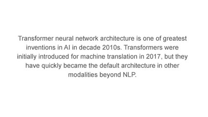 Transformer是一种基于注意力机制的神经网络架构。Transformer架构在Attention is All You Need论文中介绍,这是一篇你可能知道的优秀论文。transformer最初用于机器翻译,但截至目前,它们已应用于人工智能的其他领域,如计算机视觉、多模态学习、机器人、强化学习等。这是一个全面的视频,深入探讨了Transformer架构和注意力机制以及其他相关主题,如大型语言模型(涵盖BERT和GPT-3),高效的Transformer和Transformer目前的状态。