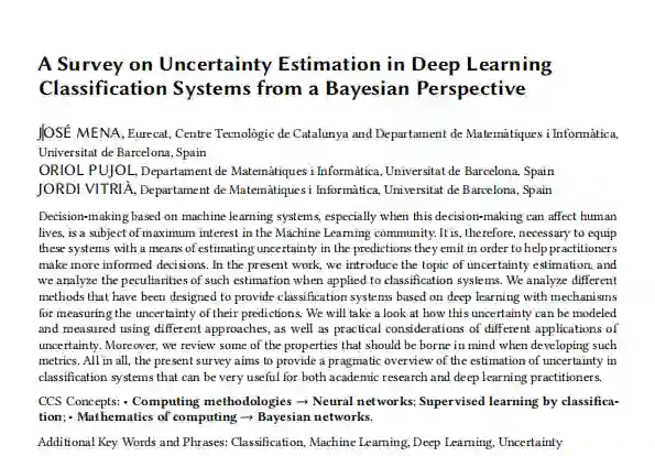 基于机器学习系统的决策,特别是当这种决策可能影响到人类的生命时,是机器学习界最感兴趣的一个话题。因此,有必要为这些系统配备一种估计其发出的预测的不确定性的方法,以帮助从业者做出更明智的决策。在本工作中,我们介绍了不确定性估计的主题,并分析了这种估计在应用于分类系统时的特殊性。我们分析了不同的方法,这些方法被设计用来为基于深度学习的分类系统提供测量其预测的不确定性的机制。我们将审视如何使用不同的方法对这种不确定性进行建模和测量,以及对不确定性的不同应用的实际考虑。此外,我们还回顾了一些在开发此类度量标准时应注意的属性。总而言之,本调查旨在为分类系统中不确定性的估计提供一个务实的概述,这对学术研究和深度学习从业者都非常有用。