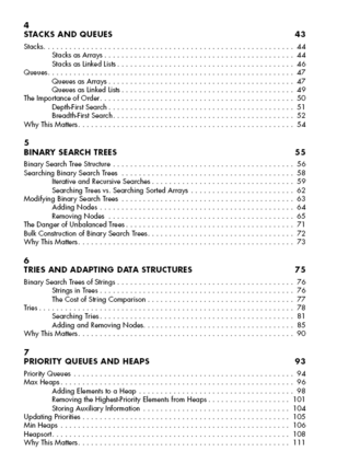 这本书集中在一些规范的数据结构,并使用它们来探索计算思维的基本主题。这些数据结构中的每一个都是更一般的数据结构和概念方法的有用示例。例如,B-树展示了保持搜索树平衡和优化昂贵内存访问的一种方法。我讨论内存使用和布隆过滤器的准确性之间的权衡;跳跃表随机化的使用;以及如何用网格、四叉树或K-D树来捕获多维结构。因此,这本书既不是编程的入门,也不是数据结构的综合选集,也不是煮咖啡的全面分析(尽管我们将反复触及这个重要的话题)。我们的目标是不同的——开发可以应用于一系列特定问题和编程语言的思维工具。