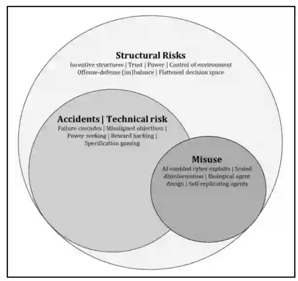 技术的开发和应用不是孤立的,而是与人类的需求、动机和环境紧密联系在一起的。人工智能系统尤其如此--经过训练的适应性学习技术,能够与社会和物理世界融合互动。这种社会技术生态通过人机互动不断发展,在改变社会结构(文化、经济和政治)的同时推动技术加速发展(Valverde,2016 年)。因此,研究人员越来越多地从复杂系统的角度来评估人工智能,重点关注其结构、功能以及与平行系统的关系如何影响风险动态(Lazar & Nelson, 2023; Weidinger et al.) 越来越多的文献研究了人工智能在技术、人类和系统层面的安全性,指出了反馈回路(Weidinger 等,2023 年;Anwar 等,2024 年)和社会适应(Bernardi 等,2024 年)的重要性。人工智能治理研究人员将这类风险称为结构性风险:技术如何塑造或被更广泛的环境塑造(Zwetsloot 等人,2019 年;Dafoe,2020 年)。尽管如此,对人工智能结构性风险动态的研究仍然有限,只有战略武器和威慑(Avin & Amadae, 2019; Flournoy et al., 2020; Wong et al., 2020; Johnson et al., 2023)和快速社会变革(Ward, 2022)领域有明显的例外。