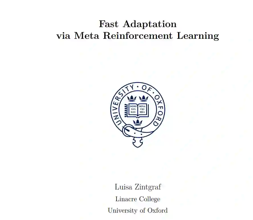 强化学习(Reinforcement Learning, RL)是一种训练人工智能体自主与世界互动的方法。然而,在实践中,强化学习仍然有局限性,禁止在许多现实世界环境中部署强化学习智能体。这是因为RL需要很长时间,通常需要人工监督,并产生在不熟悉的情况下可能表现出出乎意料的特殊智能体。本文的目标是使RL智能体在现实世界中部署时更加灵活、稳健和安全。我们开发具有快速适应能力的智能体,即能够有效学习新任务的智能体。为此,我们使用元强化学习(Meta- RL),在这里我们不仅教智能体自主行动,而且教智能体自主学习。基于快速适应可以分为“任务推理”(理解任务)和“任务求解”(解决任务)的直觉,我们提出了四种新的元RL方法。我们假设这种分离可以简化优化,从而提高性能,并且更适合下游任务。为了实现这一点,我们提出了一种基于上下文的方法,在这种方法中,智能体以表示其对任务的当前知识的上下文为条件。然后,智能体可以使用这一点来决定是进一步了解任务,还是尝试解决它。在第5章中,我们使用确定性上下文,并确定这确实可以提高性能并充分捕获任务。在接下来的章节中,我们将在上下文中引入贝叶斯推理,以实现在任务不确定性下的决策。通过结合元强化学习、基于上下文的学习和近似变分推理,开发了为单智能体设置(第6章)和多智能体设置(第7章)计算近似贝叶斯最优智能体的方法。最后,第8章解决了稀疏奖励的元学习的挑战,这是许多现实世界应用的重要设置。观察到,如果奖励稀疏,现有的元强化学习方法可能会完全失败,并提出一种方法来克服这一问题,即鼓励智能体在元训练期间进行探索。我们以对当前发展背景下的工作的反思和对开放问题的讨论来结束论文。综上所述,本文的研究成果极大地推动了基于Meta-RL的快速适应领域的发展。本文开发的智能体可以比以前的任何方法更快地适应各种任务,并且可以为比以前可能的更复杂的任务分布计算近似贝叶斯最优策略。我们希望这有助于推动Meta-RL研究的发展,并从长远来看,利用RL解决重要的现实世界挑战。