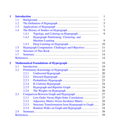 这本开放获取的书籍讨论了超图计算的理论和方法。许多数据之间的底层关系可以用图表来表示,例如在计算机视觉、分子化学、分子生物学等领域。在过去的十年中,人们开发了基于图的学习和神经网络方法来处理这类数据,它们特别适合处理关系学习任务。然而,在许多实际问题中,我们关心的对象之间的关系比两两之间的关系更复杂。简单地将复杂的关系压缩为两两的关系必然会导致信息的丢失,这些信息对于学习任务来说可以预期是有价值的。超图作为图的一种延伸,已经显示出与图相比在建模复杂关系方面的优越性能。近年来,超图相关的AI方法的研究越来越受到欢迎,这些方法已经被用于计算机视觉、社交媒体分析等。我们将这些尝试总结为一种新的计算范式,称之为超图计算,其目标是使用超图来表述数据底层的高阶关联,然后针对不同的应用在超图上进行语义计算。这本书的内容包括超图计算范式、超图建模、超图结构演化、超图神经网络以及超图计算在不同领域的应用。我们在这本书中进一步总结了超图计算的近期成就和未来的发展方向。