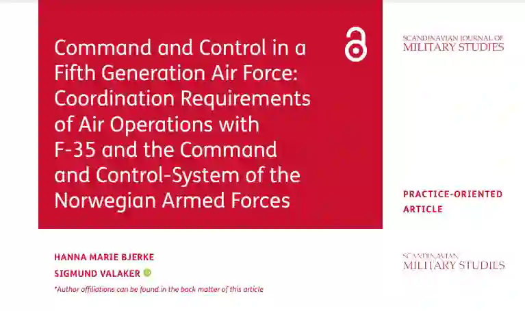 本文讨论了F-35 "闪电"战斗机对挪威皇家空军指挥与控制(C2)可能的影响方式。它强调了协调的重要性,回答了有关F-35的实施对其他能力相互依赖性的影响问题。这一基础被进一步用来讨论对C2核心要素的可能影响,如程序、人员、通信和信息系统。基于F-35系统的能力,发现挪威武装部队中跨领域和C2级别的相互依存关系的发展;这些相互依存关系的复杂性,既受到空中行动执行的影响,也受到环境突发事件的影响,意味着组织需要灵活使用协调机制。我们发现,相互依存关系,以及如果要获得成功所需的协调,对涉及F-35的空中行动指挥和控制有影响。我们建议该组织应更积极地使用分层和水平结构,以适应跨领域和C2级别的知识和信息共享。程序需要包括授权的方法和系统,人员需要了解相互依存关系和多域作战。最后,通信和信息系统必须是可用的、可互操作的和强大的。