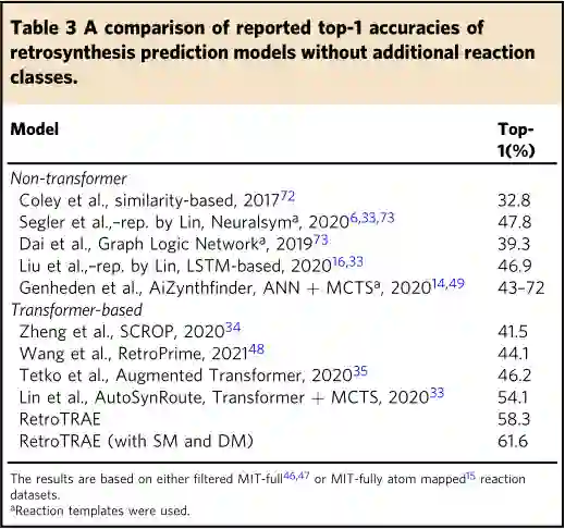 [1] Ucak UV, Ashyrmamatov I, Ko J, et al. Retrosynthetic reaction pathway prediction through neural machine translation of atomic environments. Nat Commun, 2022. 13(1): p. 1186.