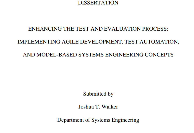 测试与评估(T&E)领域存在优化和创新的机会,自动测试框架和迭代测试方法的出现就是证明。基于模型的系统工程(MBSE)等相关概念的定向扩展和应用将带来更多机遇。本论文记录了在应用于实际项目时加强测试与评估领域的三种方法的开发和实施情况。首先,系统的开发方法从瀑布式(Waterfall)过渡到了敏捷式(Agile),从而在创建新功能时提供了一种反应更快的方法。其次,开发了测试自动化框架(TAF),实现了测试程序的自动执行。第三,使用系统建模语言(SysML)创建了一种测试文档方法,采用了 MBSE 的概念,使测试程序的规划和分析标准化。
