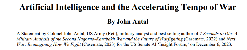 最近的四场冲突(其中两场仍在进行)展示了战争的未来:第二次纳戈尔诺-卡拉巴赫战争(2020 年);以色列-哈马斯战争(2021 年 "长城守护者行动");俄罗斯-乌克兰战争(2022 年-),以及当前的以色列-哈马斯战争(2023 年)。第一场战争主要由机器人系统获胜;第二场战争由人工智能(AI)获胜;第三场战争是 1945 年以来欧洲最大的冲突,也是历史上最具创新性的战争。当前的中东战争是进一步加强人工智能军事应用威力的又一个例子。