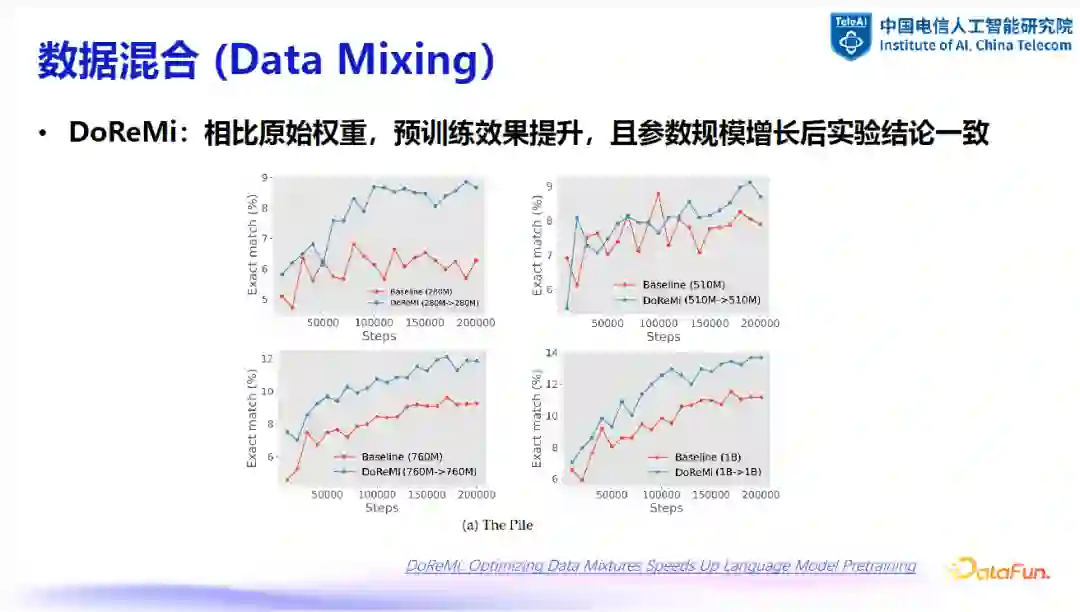 我们平常提到的“数据配比”, 是指在预训练阶段对不同来源的数据配置不同权重,以期达到最优训练效果的过程。论文中通常采用的对应术语是 “数据混合”(Data Mixing)。