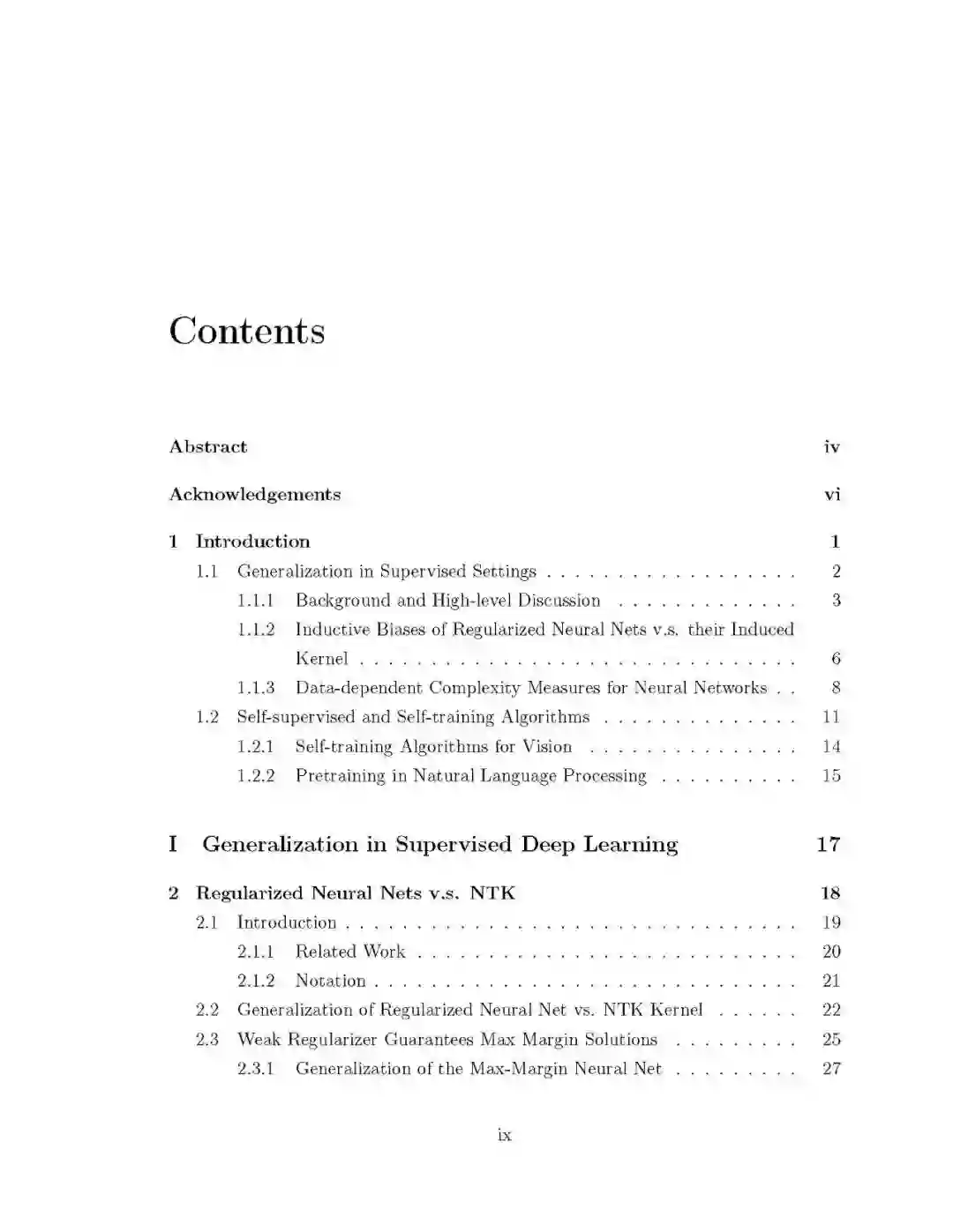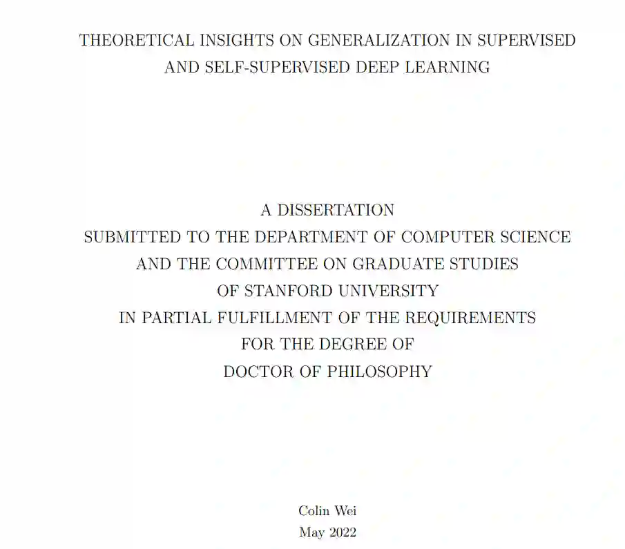 深度学习在经验上非常有影响力,但在理论理解上滞后。神经网络在结构和训练算法上都比传统的机器学习模型复杂得多,所以传统的理论直觉可能不适用。本文旨在从理论上更好地理解深度学习中的泛化问题。在论文的第一部分,我们研究了所有数据都有标签的监督设置下的泛化。我们的主要工具是泛化界:通过推导和研究泛化界,我们可以深入了解深度学习中影响泛化的各种因素。