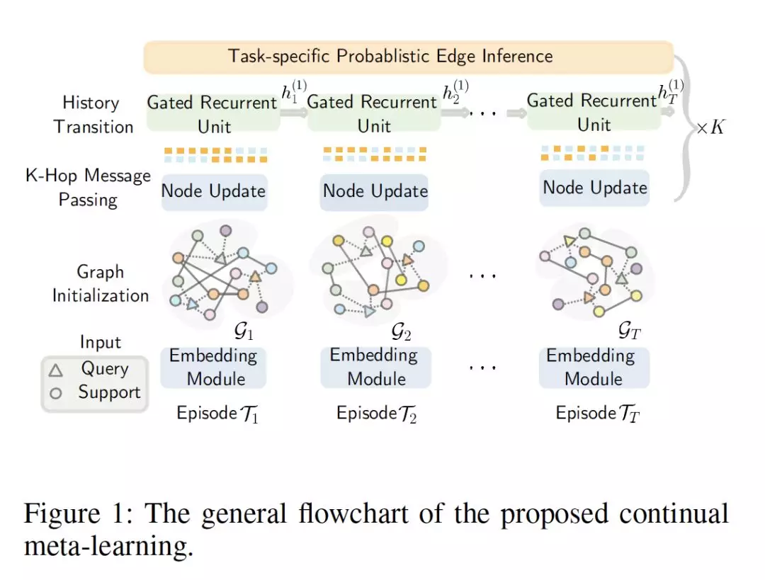 摘要:元学习(Meta-learning)用于few-shot learning,允许机器利用以前获得的知识作为优先级,从而在只有少量数据的情况下提高新任务的性能。然而,大多数主流模型都存在灾难性遗忘和鲁棒性不足的问题,因此不能充分保留或利用长期知识,同时容易导致严重的错误累积。本文提出了一种新的基于贝叶斯图神经网络(CML-BGNN)的连续元学习方法。通过将每个任务形成一个图,可以通过消息传递和历史迁移很好地保存任务内部和任务间的相关性。为了解决图初始化过程中的拓扑不确定性问题,我们使用了Bayes by Backprop算法,该算法利用amortized推理网络逼近任务参数的后验分布,并将其无缝地集成到端到端边缘学习中。在miniImageNet和tieredImageNet数据集上进行的大量实验证明了该方法的有效性和效率,与最先进的miniImageNet 5-way 1-shot分类任务相比,性能提高了42:8%。
