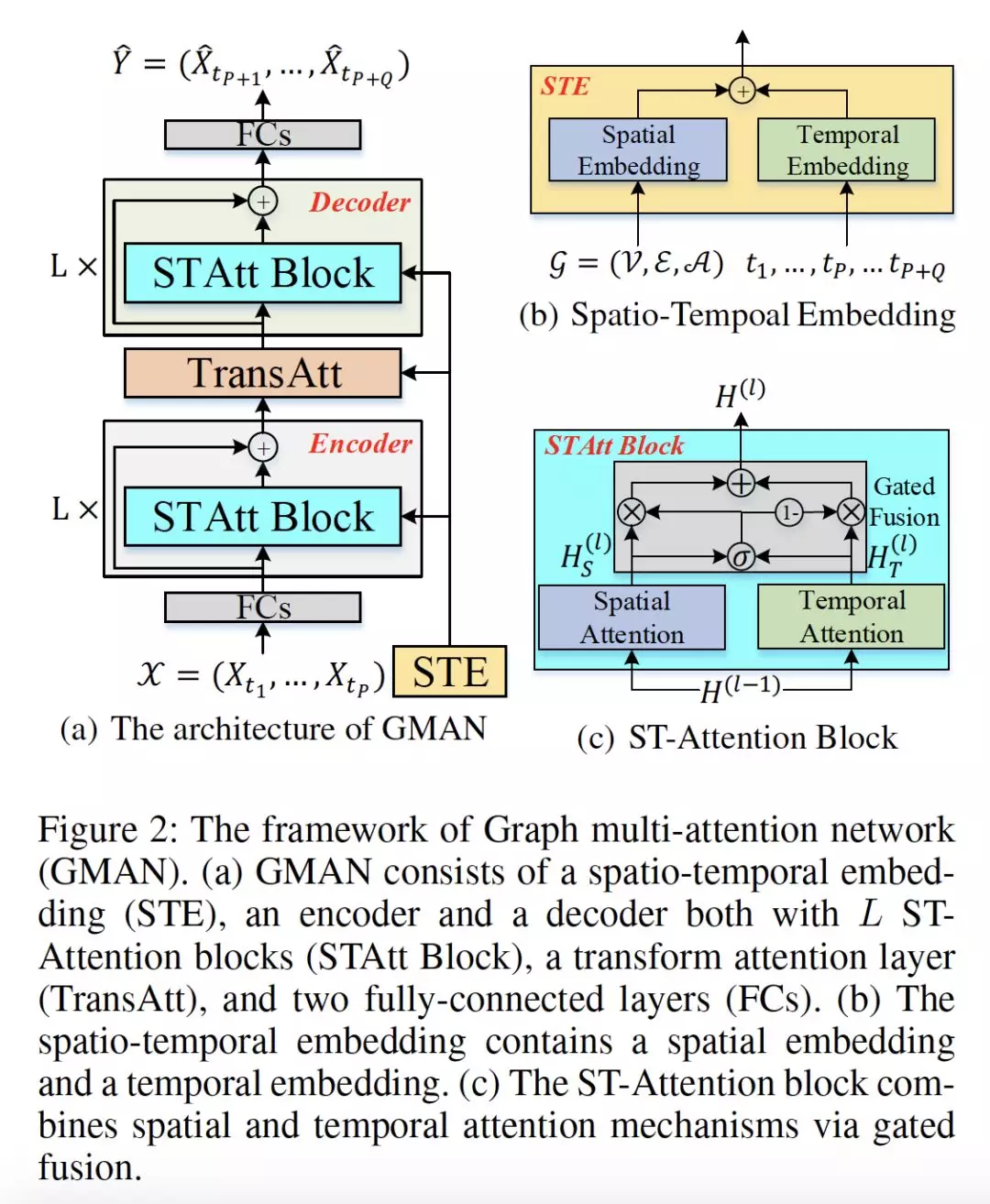 摘要:由于交通系统的复杂性和影响因素的不断变化,长期的交通预测具有很大的挑战性。在本文中,我们以时空因素为研究对象,提出了一种多注意力图网络(graph multi-attention network ,GMAN)来预测道路网络图中不同位置的时间步长的交通状况。GMAN采用了一种encoder-decoder结构,其中编码器和解码器都由多个时空注意力块组成,以模拟时空因素对交通条件的影响。编码器对输入流量特征进行编码,解码器对输出序列进行预测。在编码器和解码器之间,应用转换注意力层来转换已编码的流量特征,以生成未来时间步长的序列表示作为解码器的输入。转换注意力机制模拟了历史时间步长与未来时间步长之间的直接关系,有助于缓解预测时间步长之间的误差传播问题。在两个现实世界中的交通预测任务(即交通量预测和交通速度预测)上的实验结果证明了GMAN的优越性。特别地,在提前1个小时的预测中,GMAN的MAE指标提高了4%,优于最新技术。源代码可在https://github.com/zhengchuanpan/GMAN找到。